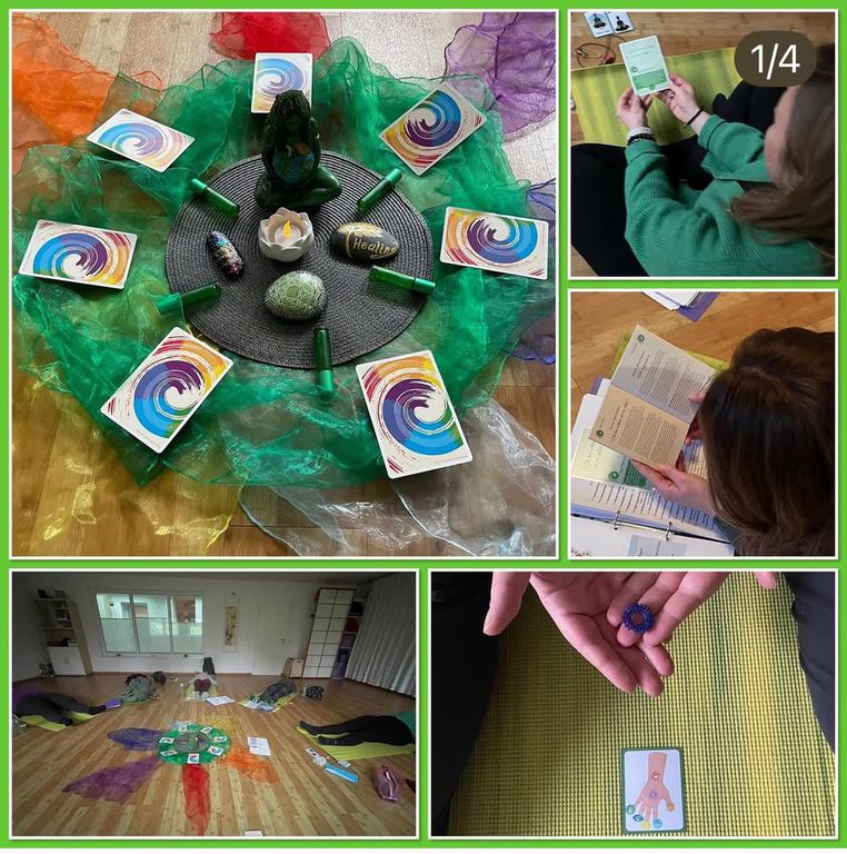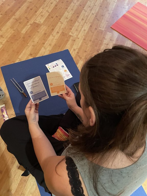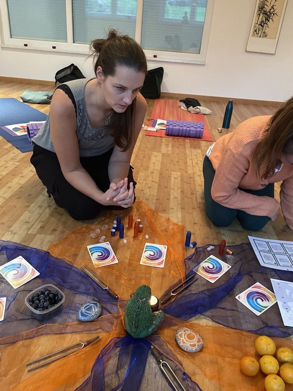 Wir arbeiten jede Woche mit Chakra-Dualitäten (z. B. Wurzel & Krone, Sakral & Stirn usw.).