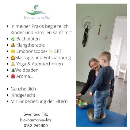 Ich begleite Kinder & Eltern ganzheitlich und sanft – damit wieder Ruhe, Sicherheit und Verbindung entstehen dürfen.